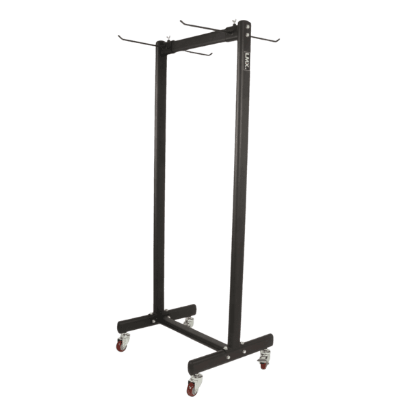 TheLMX1227 LMX.® Aerobic mat rack is designed for storing LMX.® aerobic, Pilates, studio, and yoga mats. Thanks to its adjustable design, the rack is also compatible with mats from other brands. The steel frame is finished with a black powder coating and fitted with sturdy swivel castors, making it easy to move - even when fully loaded. It can hold up to 30 aerobic mats or 60 thinner mats, such as Pilates or yoga mats. Why choose the LMX1227 LMX.® Aerobic mat rack? High capacity: Holds up to 30 thick aerobic mats or 60 thinner Pilates, studio, or yoga mats. Versatile use: Adjustable hanging pins accommodate mats from various brands. Mobile and practical: Easy to move thanks to robust swivel castors. Professional quality: Constructed from strong black powder-coated steel.